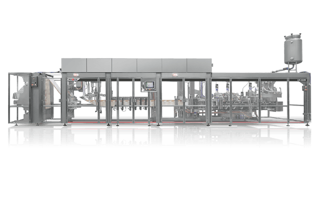New range of innovative high speed Doy pouch machinery with an unique dual motion system composed of an intermittent station for pouch forming and sealing and a continuous station for product filling.